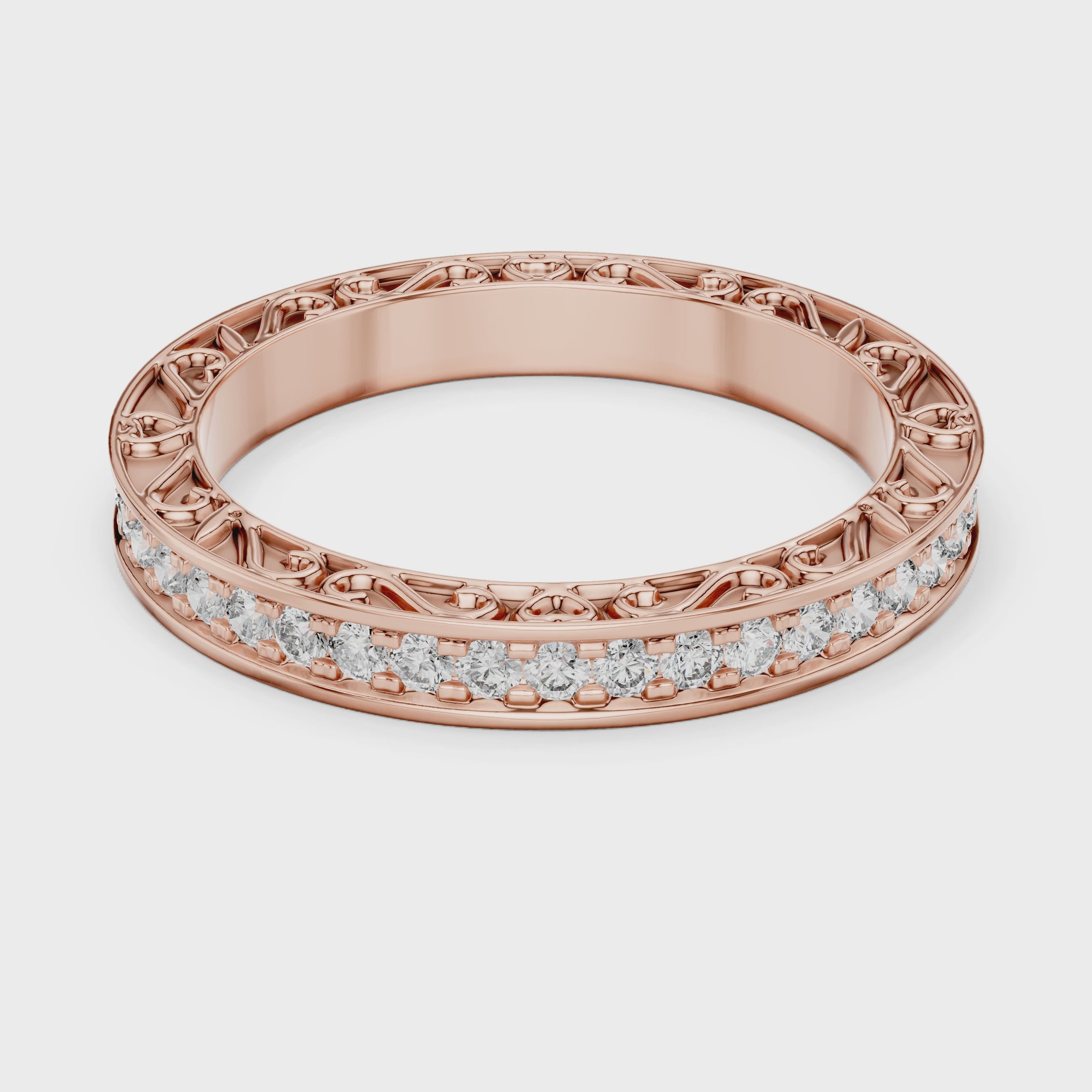 The Bauska Ring - Round Cut Micro-Prong Eternity Band with Vintage Filigree