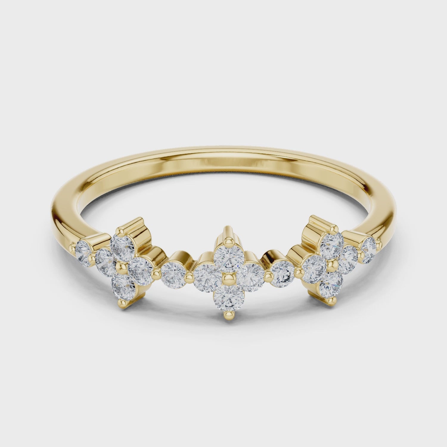 The Valmiera Ring - Round Cut Floral Cross Diamond Band